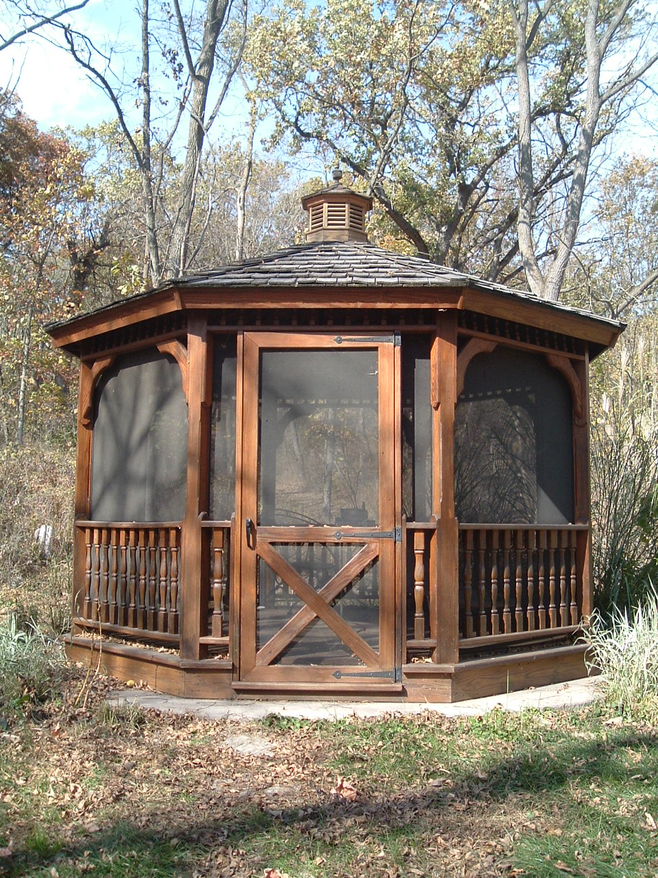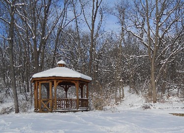 The gazebo offers a quiet reflection space where you can enjoy the cool breezes in the screened in environment. Often a deer or turkey will walk by while you are sitting there enjoying nature.