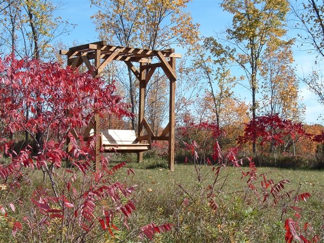 Christ in the Wilderness has over 3 miles of walking paths meandering through the woods and meadows. Sprinkled along these paths are quiet sitting places for relaxation and reflection. This includes a free-standing bench swing that retreatants enjoy, while watching the wildlife or beautiful sunsets.